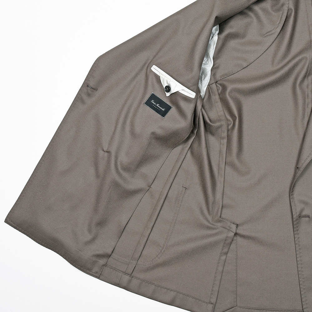 目付け270gと軽いウエイトのウールサキソニー生地は秋、冬、春と3シーズン着用でき、綺麗なドレープが特徴的です。