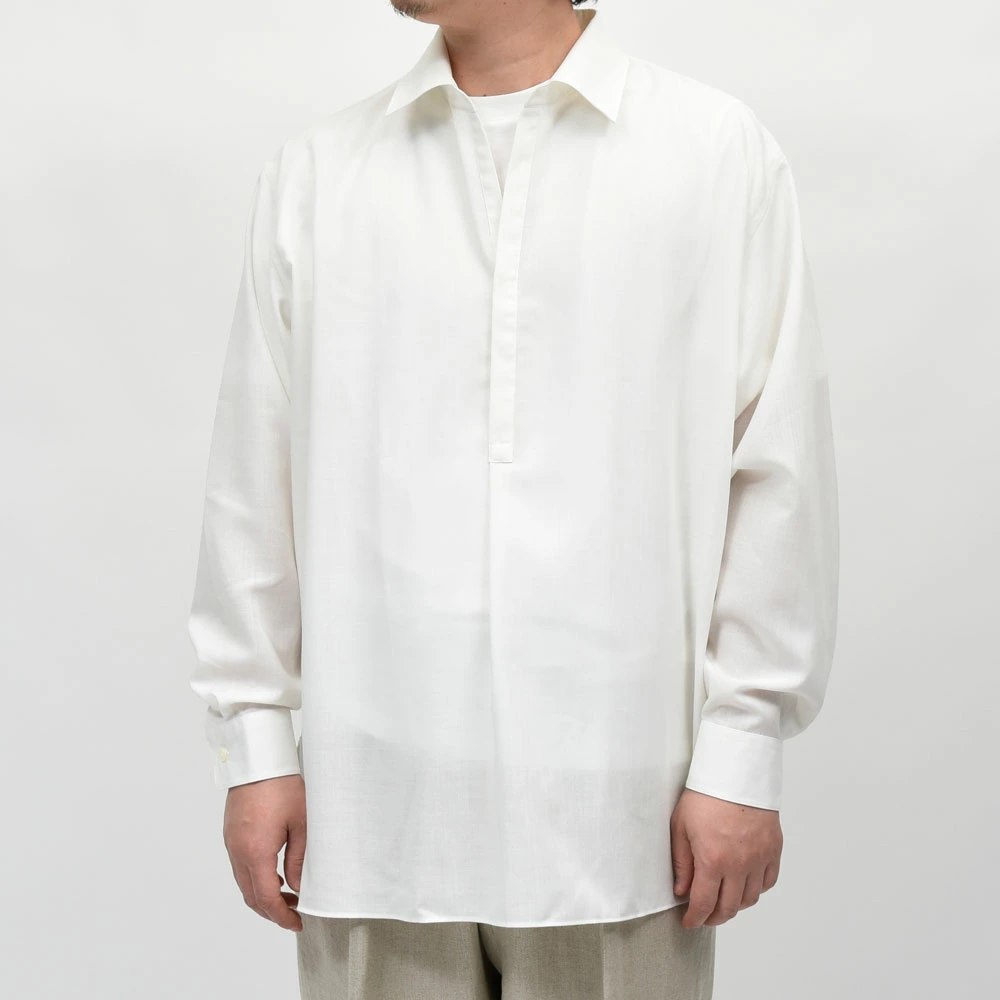 今回のgarohのラインナップの中でも、個人的に非常に興味深いアプローチだと感じたのがこちらのスキッパーシャツです。