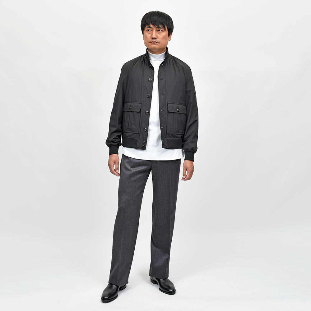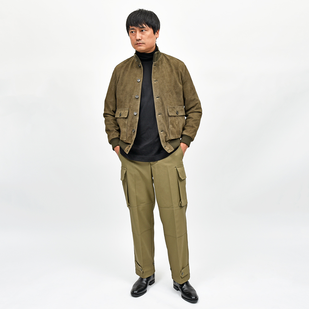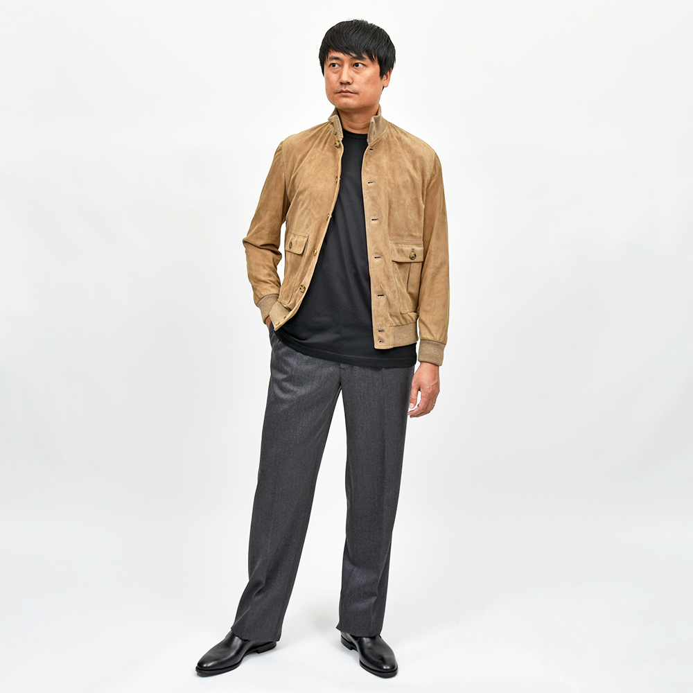 ライダースや同モデルのスエードとはまた違った男らしさを醸し出しており、それぞれ異なった雰囲気を演出してくれるのも魅力の一つです。