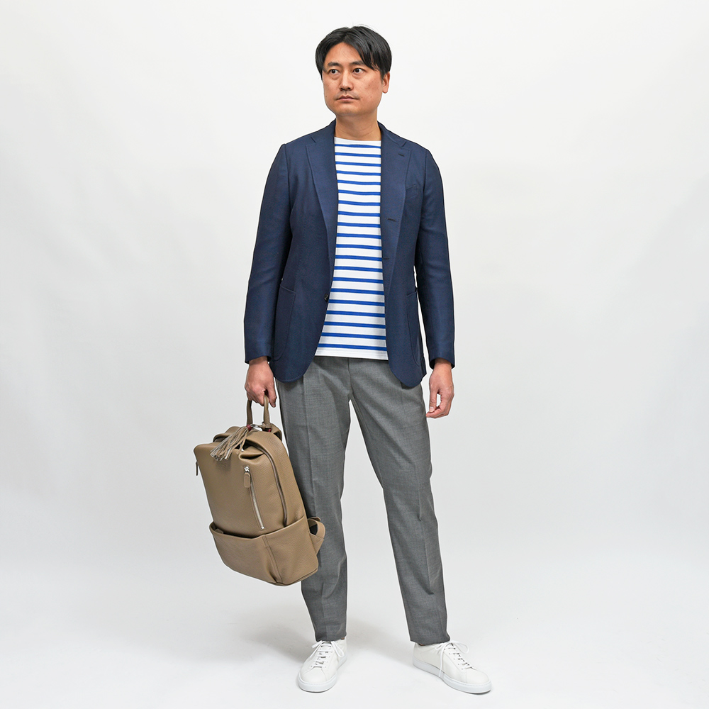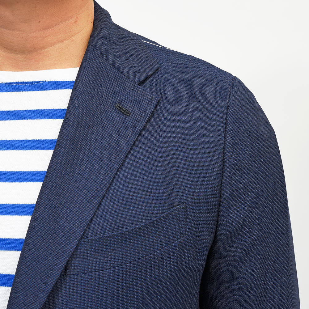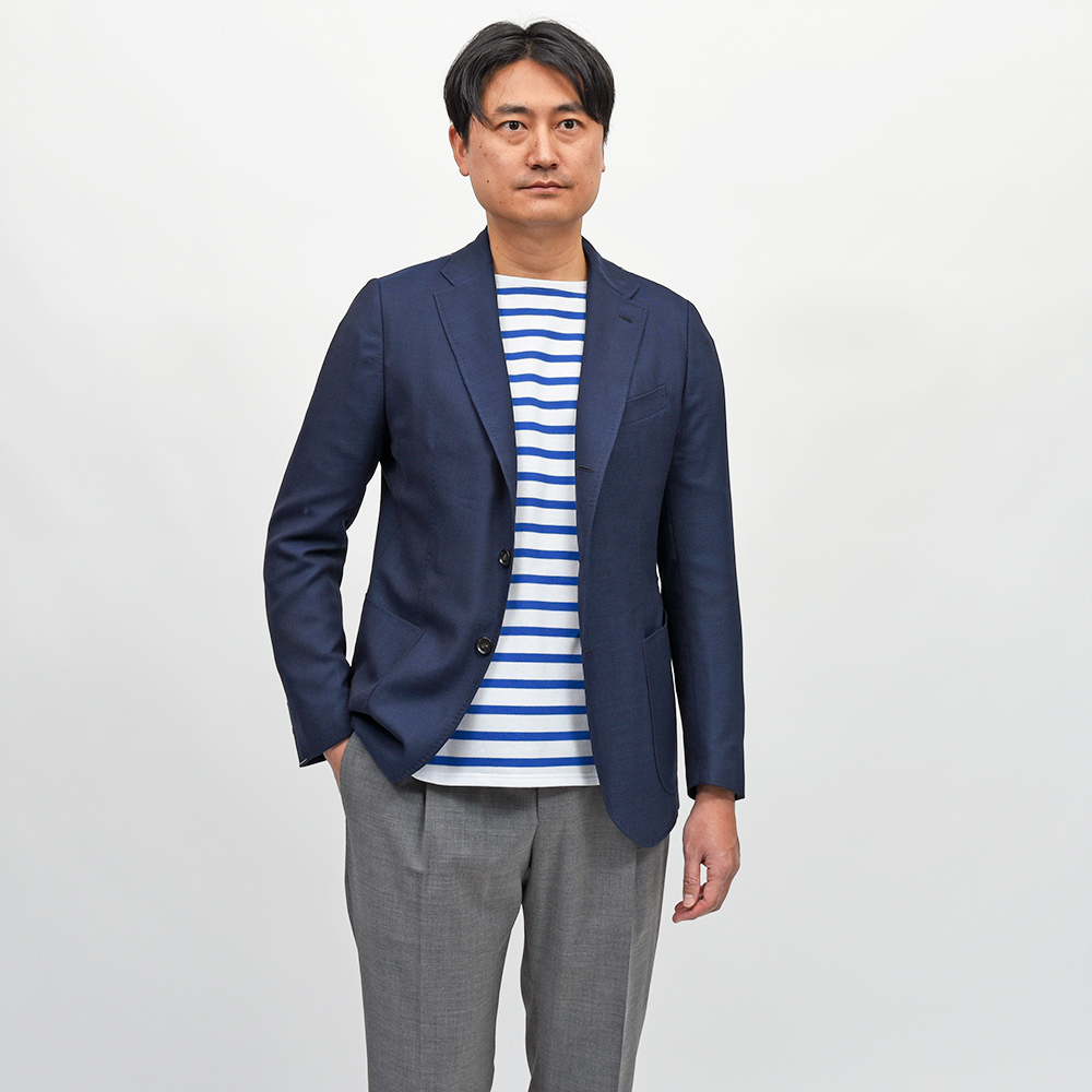 当ブランドの記事だけでも何回「ネイビーホップサック」について書いたか思い出せませんが、gujiグループ全体では数多のブランド、シルエットで毎期オーダーしている大定番ジャケット。