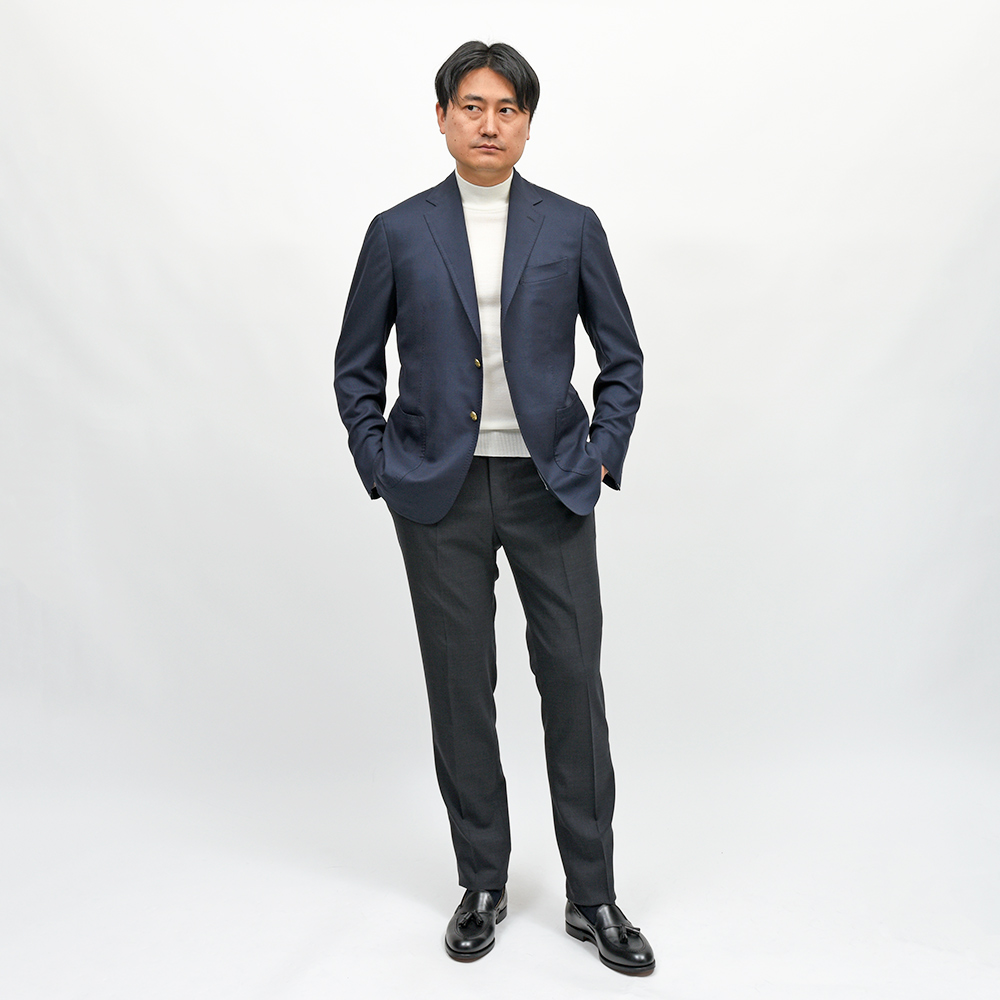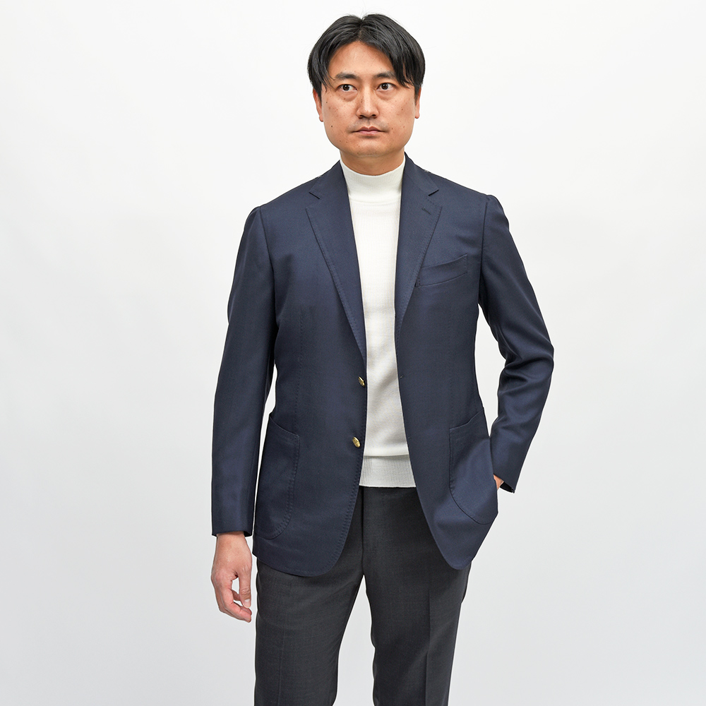 ハンガーに吊ってある状態では他のブレザーと相違なく見えるかもしれません。しかし一度袖を通していただければ必ずご理解いただける「本物」のクオリティは他ブランドを寄せ付けない圧倒的な着心地とオーラが宿るお洋服です。