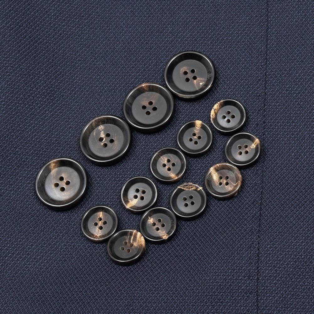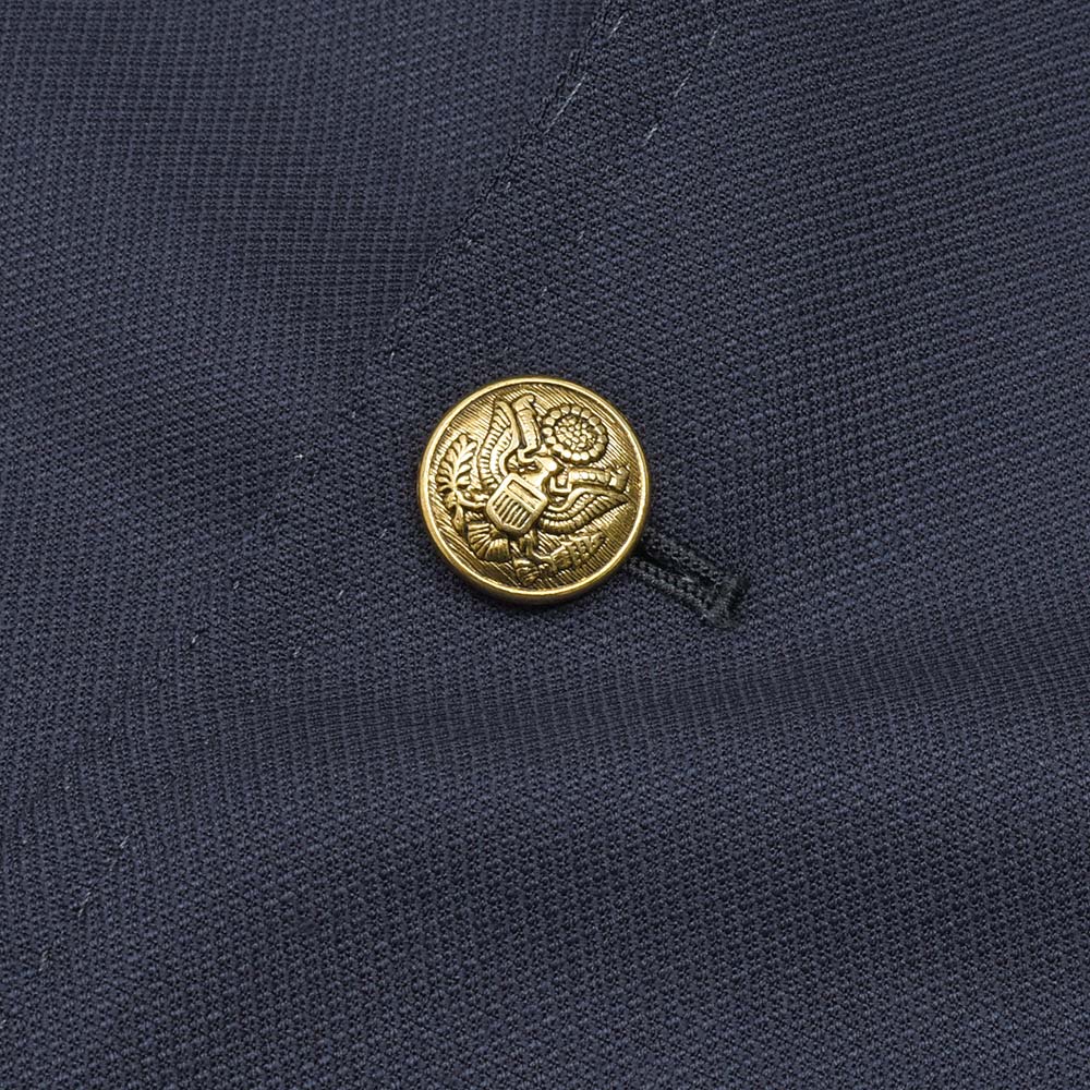 ゴールドのメタルボタンでブレザーの仕上がりとなっていますが、ホーンボタンが付属しており、シーンに合わせて付け変えることが可能!
