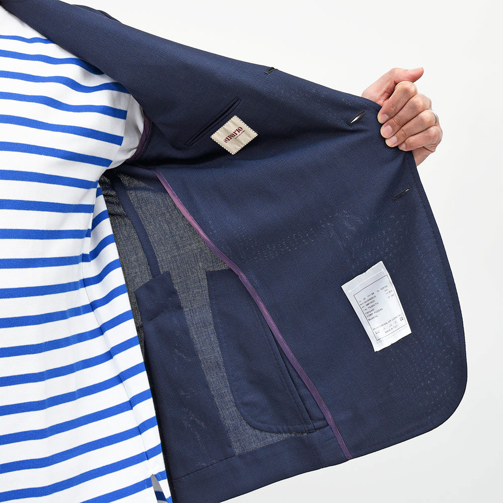 フルキャンバスと数多のハンド工程から人体にピッタリと沿わせることで軽さを生むSTILE LATINOに対し、SIPARIOは副資材を極力削ぎ落としシャツのような物理的な軽さを強みとしています。