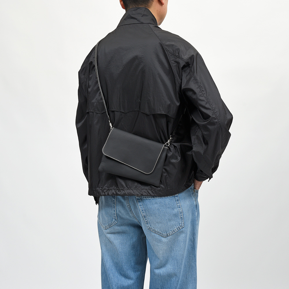 フランスのレミーカリア社の型押しではないトップグレードのグレインレザーを使用しており、肩掛けと斜めがけの2WAYで使用することができます。